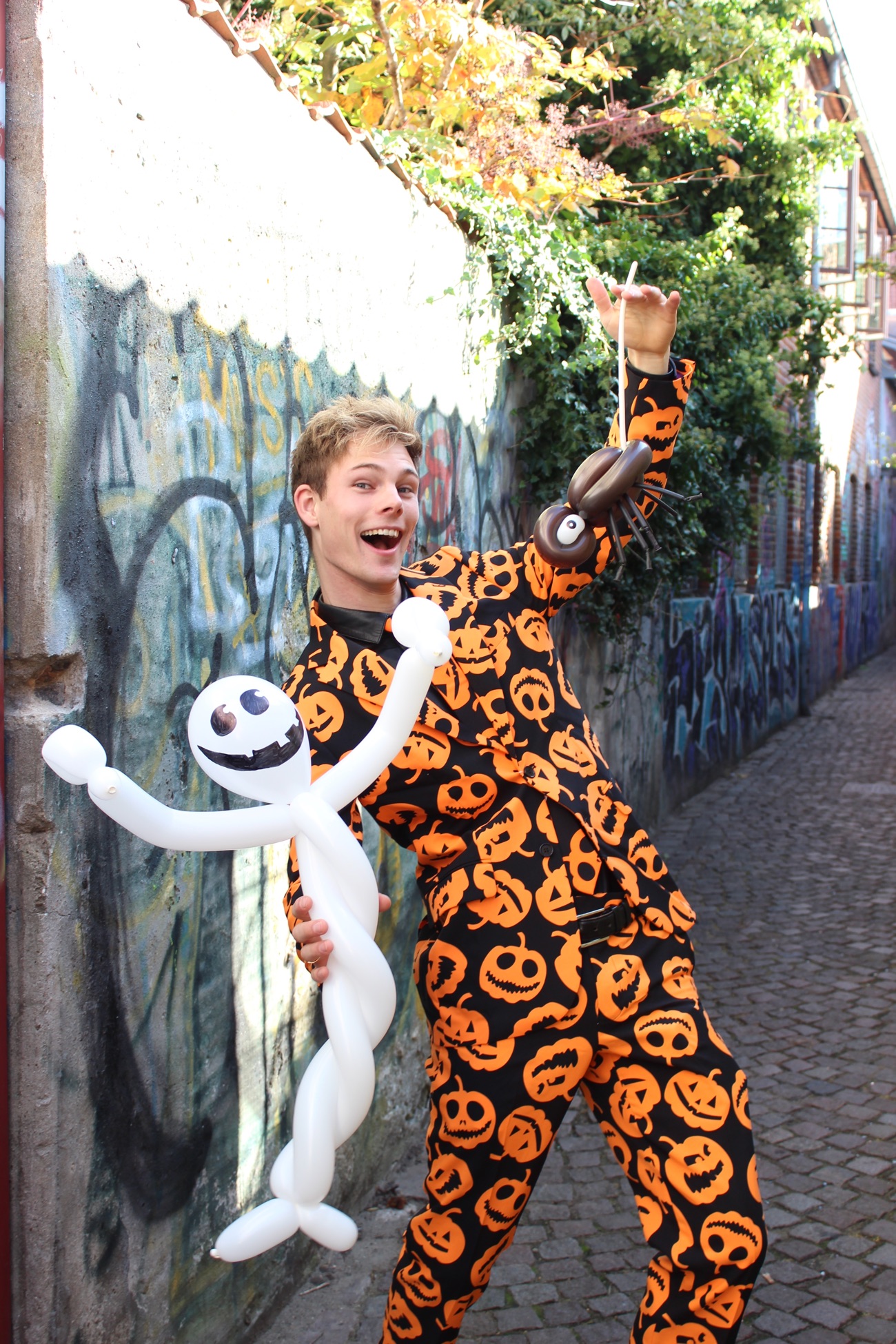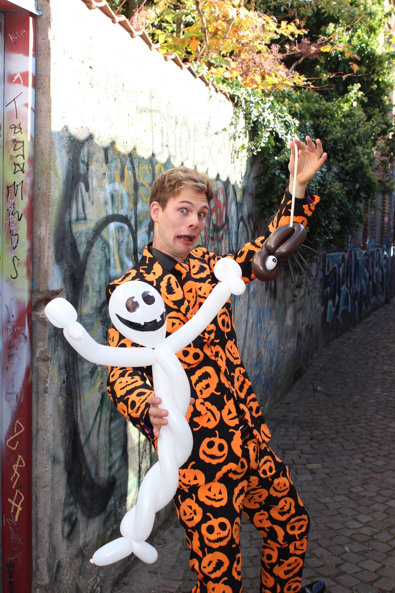 Træd ind i en verden af spænding og mystik med den berygtede Mr. Halloween. Man har måske hørt de uhyggelige myter om ham, men vil I tage udfordringen op og være en del af hans fortryllende ballonkunst? Lad jer fascinere, når han fremmaner fantastiske ballonspøgelser og andre skabninger fra den tomme luft inden i ballonerne. Vær forberedt på ballonmonstre, skeletter, vampyrer og endda bussemænd, der tager form i hans kyndige hænder.